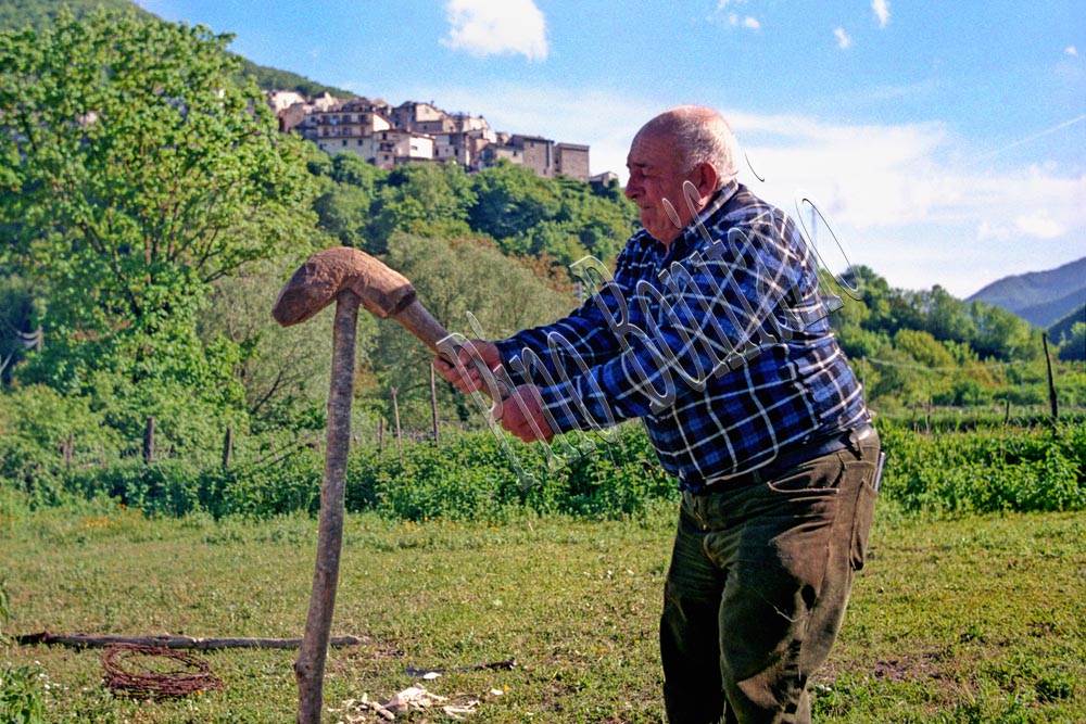 Vallepietra, uso del maglio di legno per conficcare un palo.