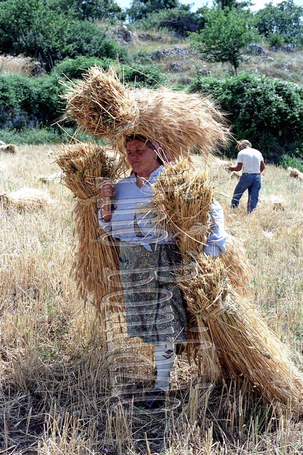 Jenne, trasporto di covoni, localmente detti "gregne".