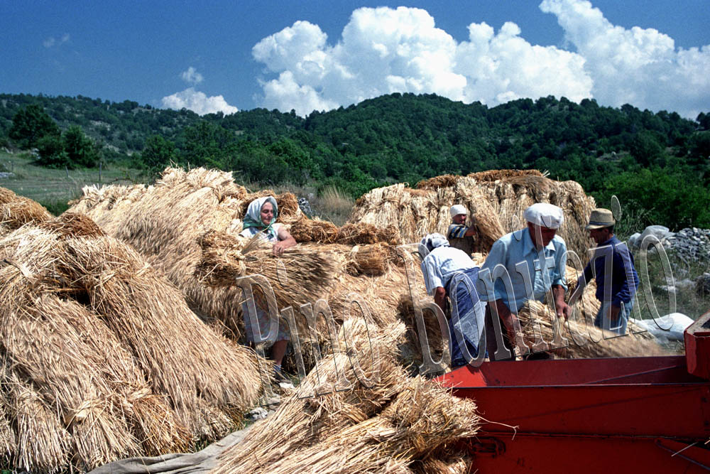 Jenne Jenne, finalmente il nastro trasportatore in un attimo getta i covoni all'interno degli ingranaggi.