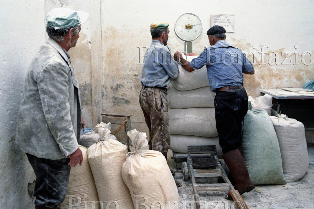 Jenne, i sacchi di farina sono pesati per pagare la tariffa.