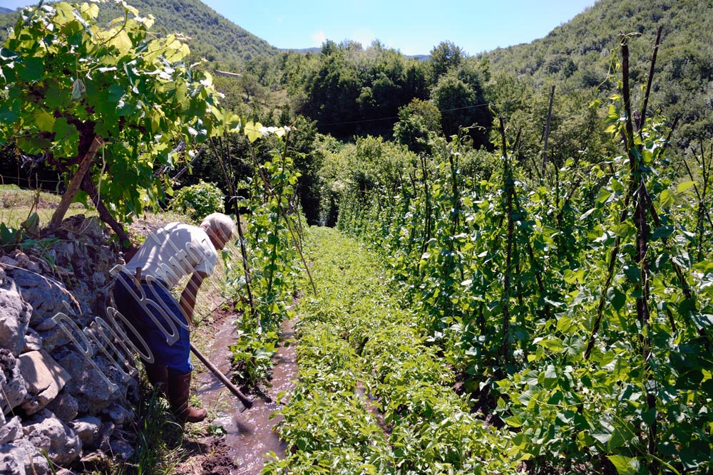 Vallepietra, l'acqua opportunamente smistata bagna tutti i solchi.