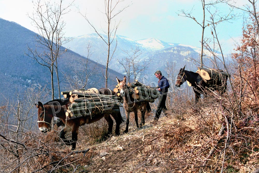 Vallepietra, molti muli devono essere impiegati per il trasporto.