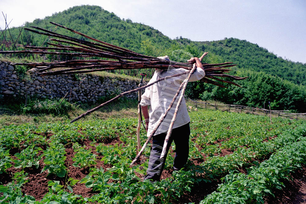 Vallepietra 2007, trasporto di paletti per il sostegno dei fagioli