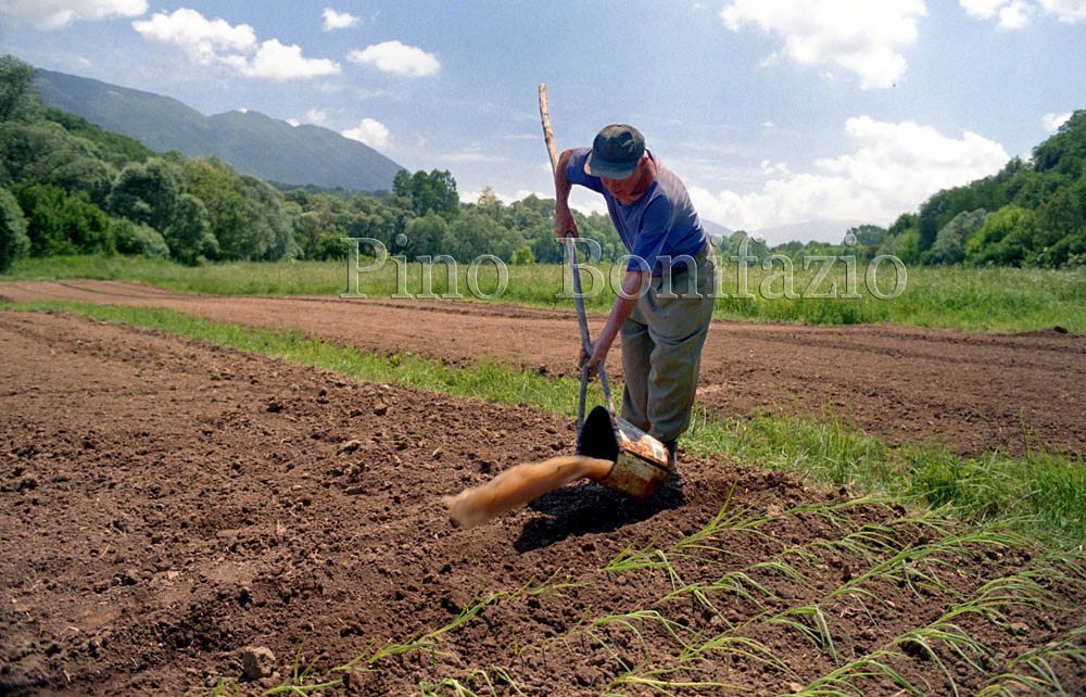 Marano 2007, il solco viene bagnato prima di piantare le cipolle