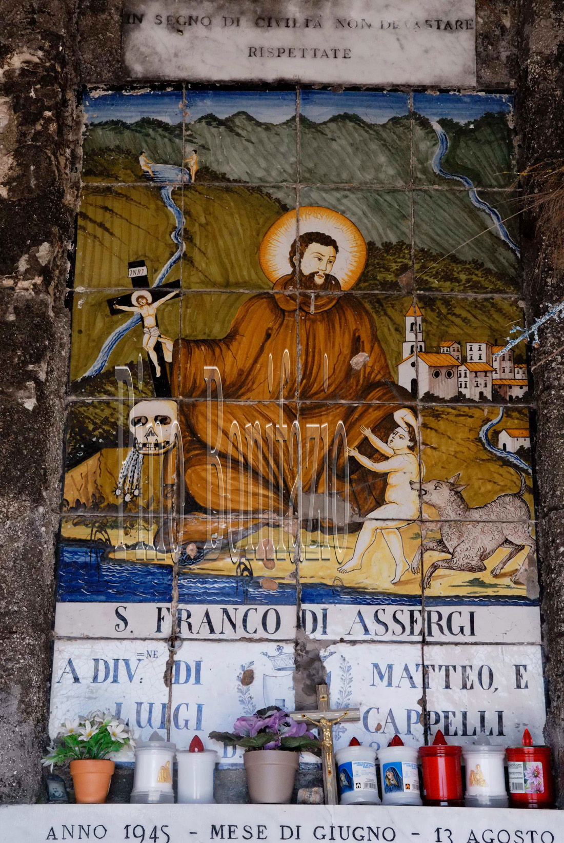 131 – San Franco di Assergi salva un bimbo dalle fauci del lupo Eremo di S. Franco. Scena del lupo con il bimbo salvato dal santo