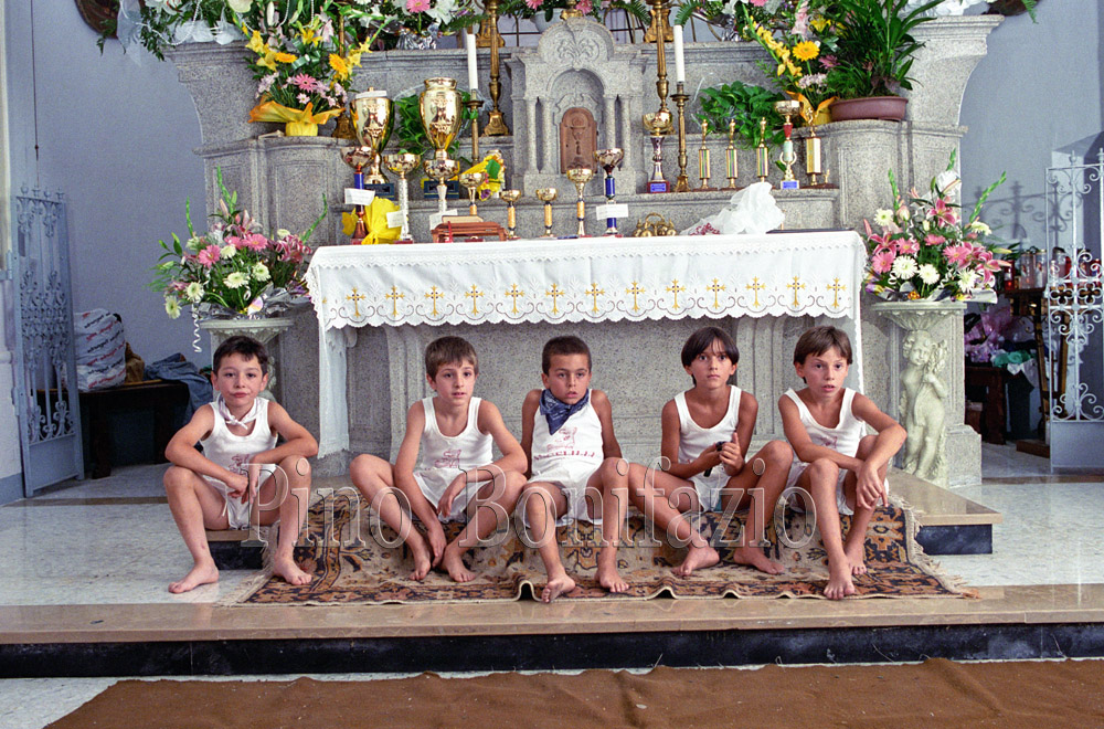 Pacentro 9-’94 Zingarelli in chiesa prima della corsa Pacentro 1994, gli Zingarelli in chiesa prima della corsa