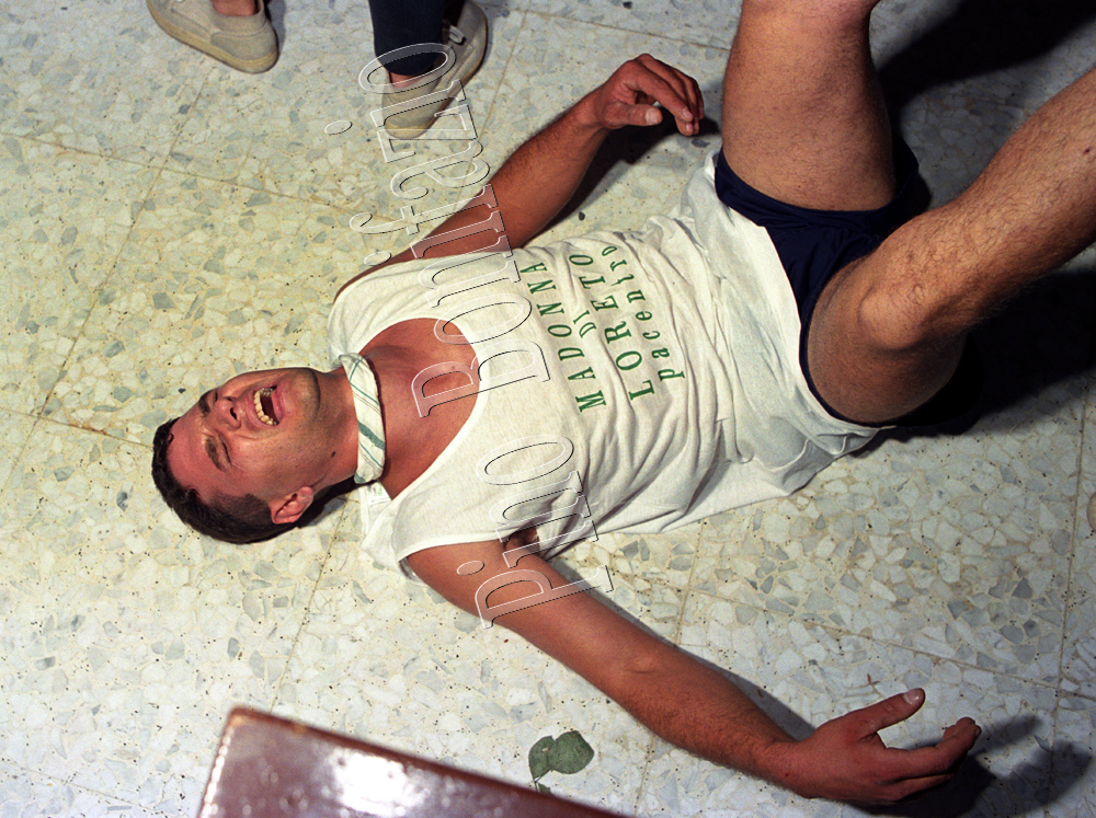 -Pacentro 9-’94 gli Zingari all’arrivo nella chiesa lauretana Pacentro 1994, gli Zingari ricevono le cure mediche
