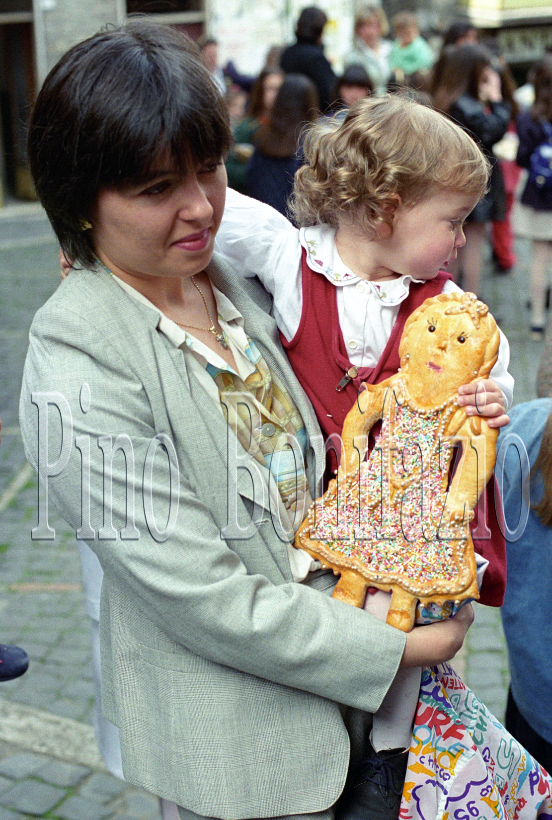Vallecorsa -FR- 25-4-1996 festa di San Marco, la pupetta 4 Vallecorsa- FR-25-4-1996 S. Marco-Mamma con bambina e pupetta