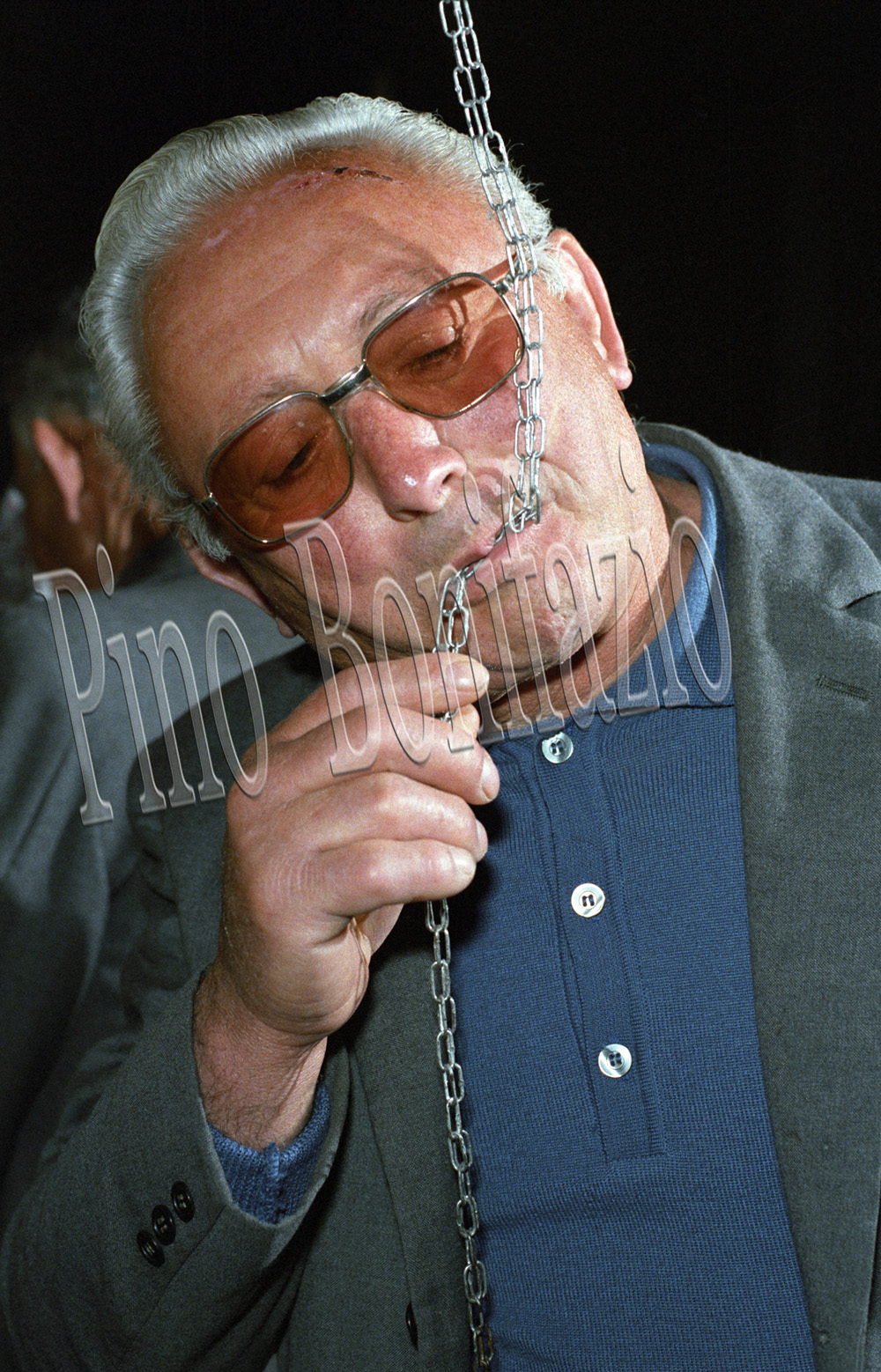 Cocullo 1986 fedeli suonano la campanella per essere protetti dal mal di denti . Cocullo 1986 fedeli suonano la campanella per proteggersi dal mal di denti .
