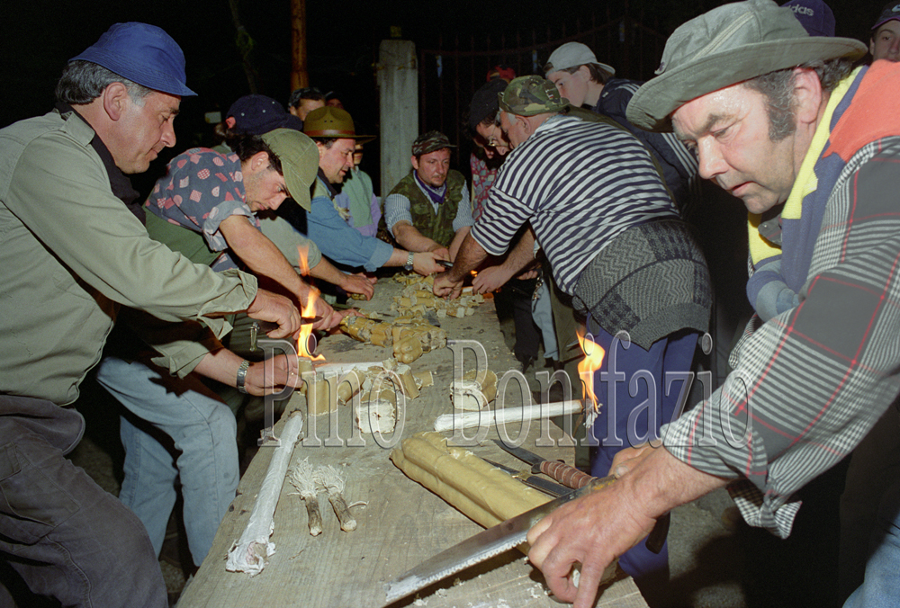 Sonnino 1996. presso Santa Maria la Sassa le torce sono tagliate in tanti pezzi per essere distribuite