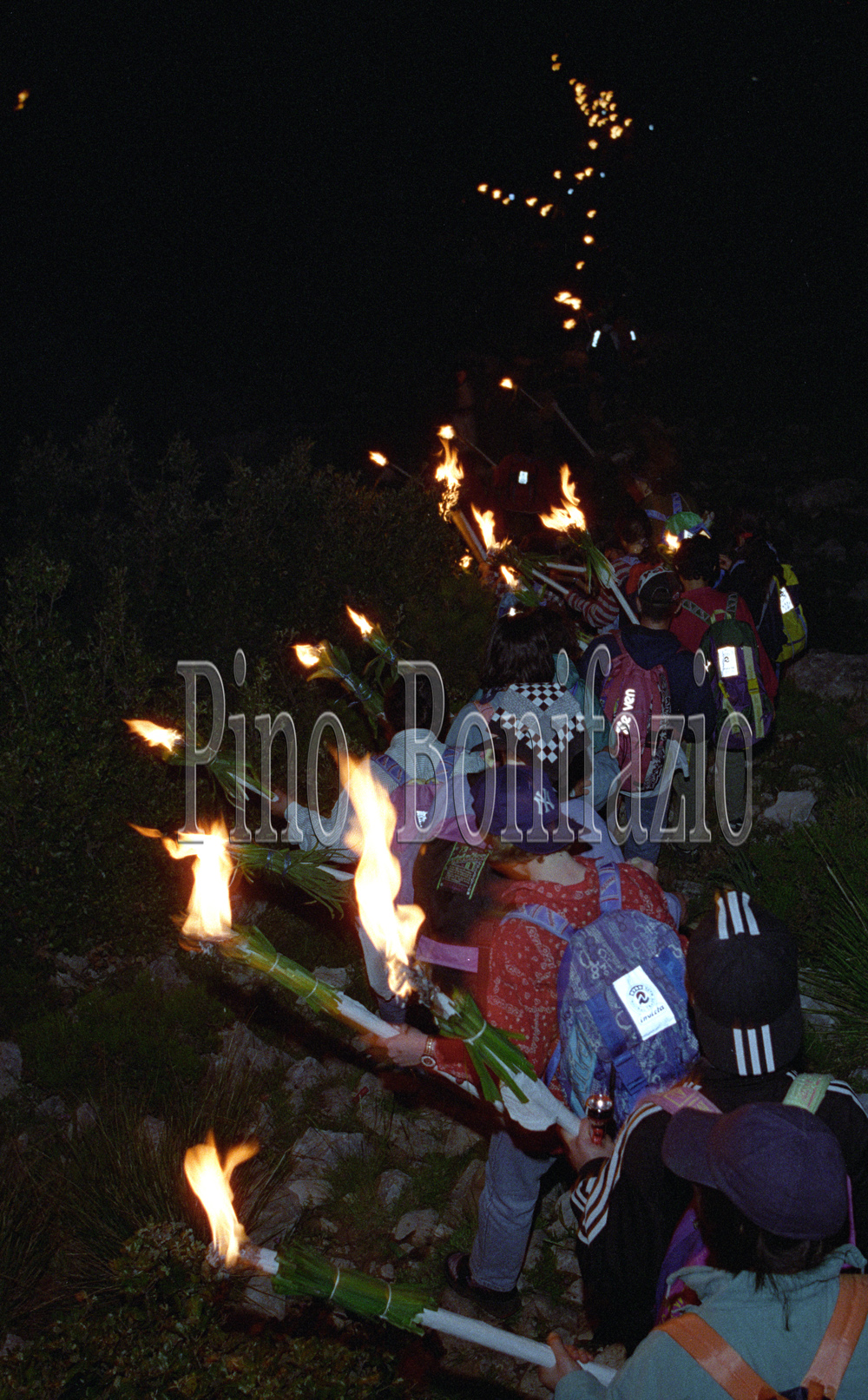 Sonnino, LT 1996 – Le torce Sonnino 1996. Le torce accese compaiono sul fianco delle Serre visibile dal paese.