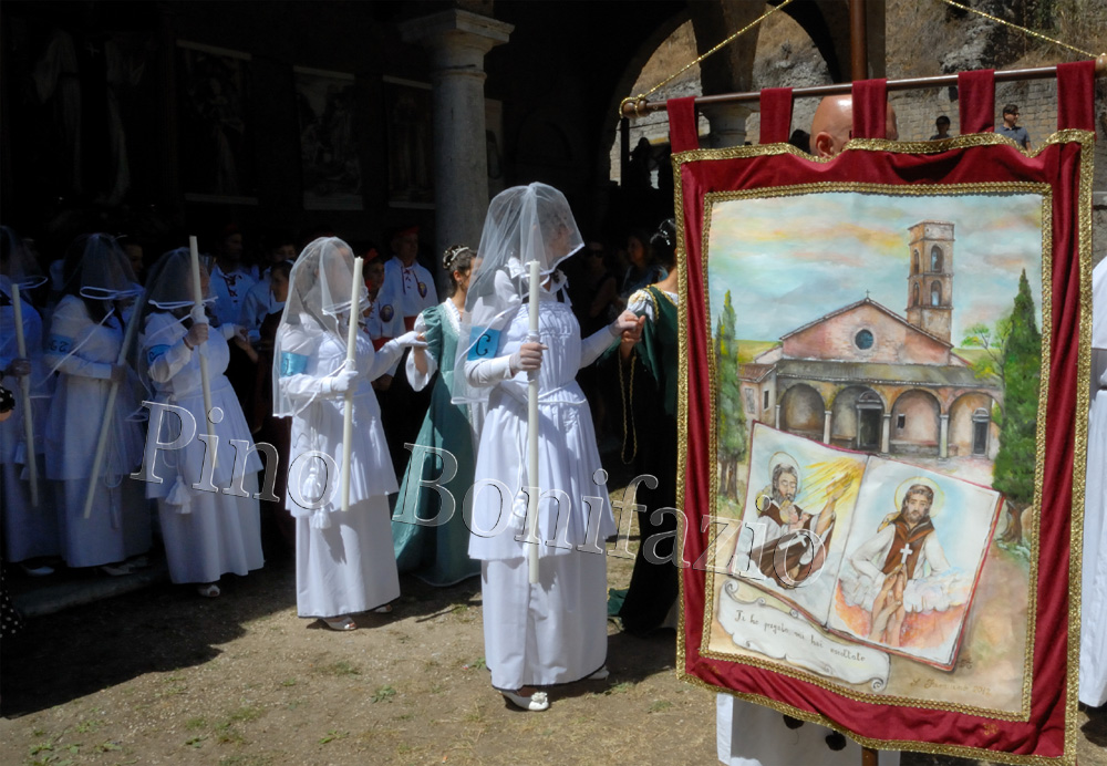 Gallese 8-8-2012. Il gruppo delle zitelle con il palio in processione